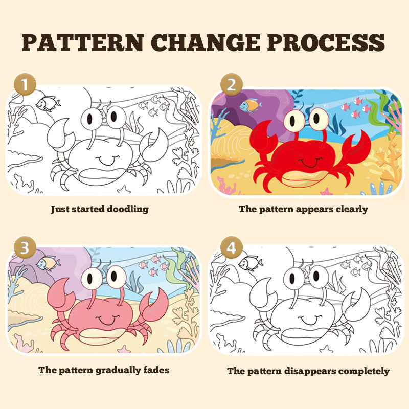 Simply fill the pen with clean water to start drawing โ the patterns appear, then fade away in seconds!