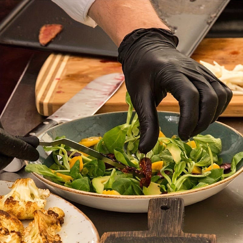 - Food Safe & Multipurpose - The black disposable gloves are food grade, latex-free, DEHP-free, and composed of better solutions for people with sensitive skin. We offer sizes medium, large and xl. They are ideal for hair dye, industrial use, food handling,cooking, food prep, BBQ, grill, cleaning, kitchen, and more.