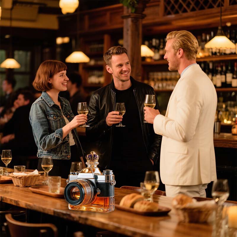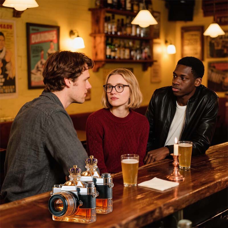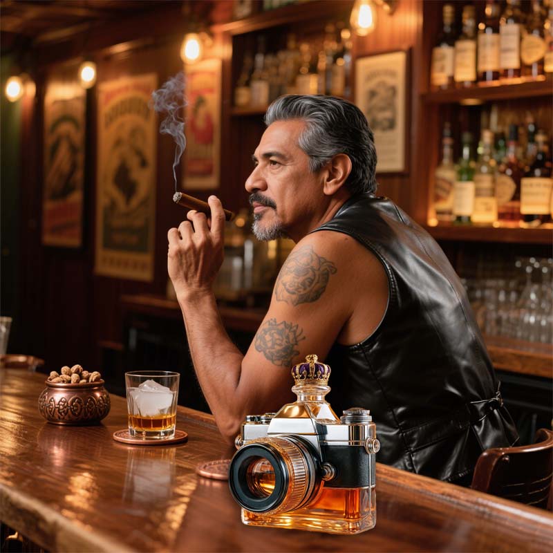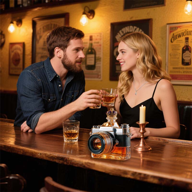 A bottle that looks through the world like a lens—this camera-shaped glass brings a touch of playful creativity to your drinkware collection. Whether it’s sparkling water or a rich amber cocktail, the way light bends through the “lens” makes every pour feel like a shot worth framing.
