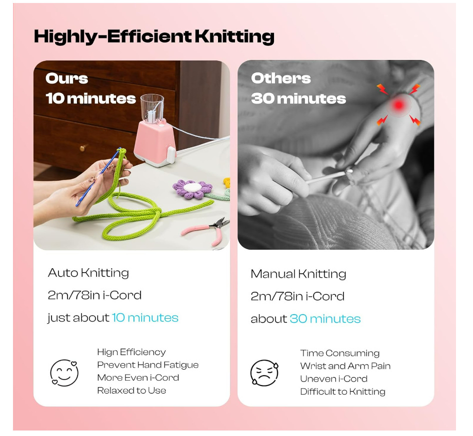 ✅ Fully automatic knitting: Simply press the button and get started – no manual cranking required 💡