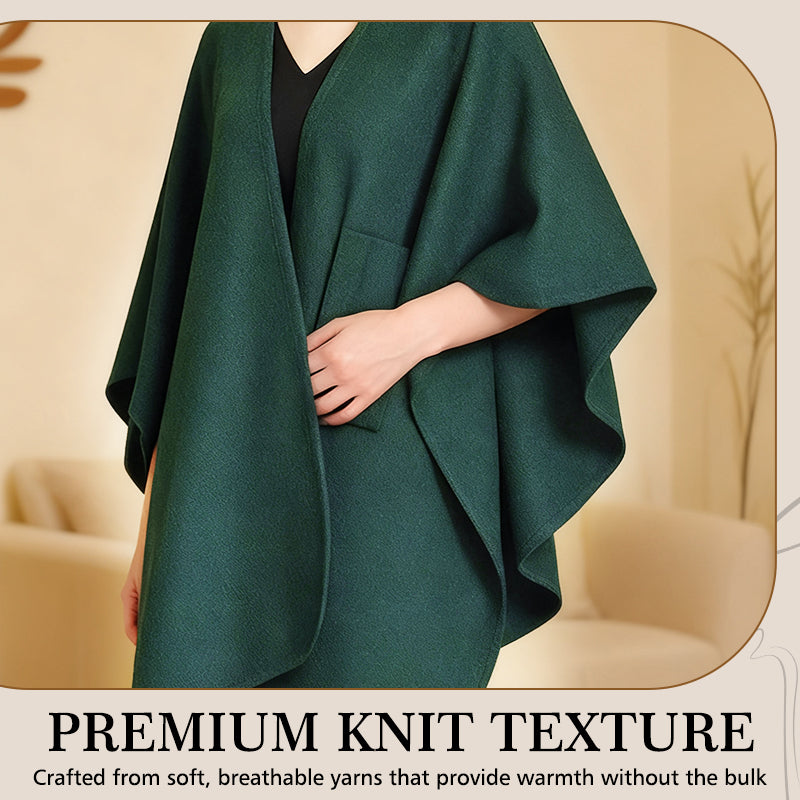 The fusion of a cape and cardigan—flowy, modern, and comfortable. It adds movement and elegance to your outfit, perfect for layering through the seasons.